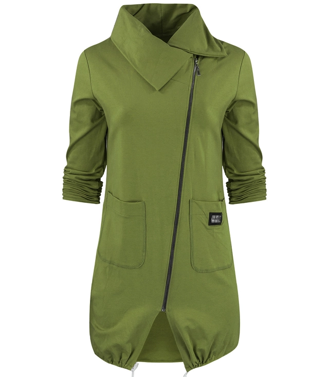 Tenká dlouhá mikina s šikmým zipem a nákrčníkem BEATA