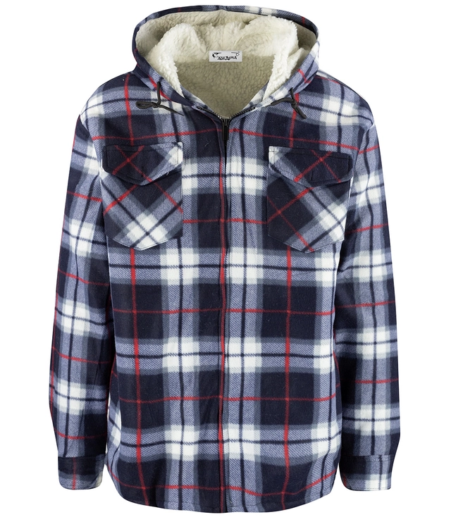 Pánská teplá fleecová kostkovaná košile s kapucí zateplená umělou kožešinou