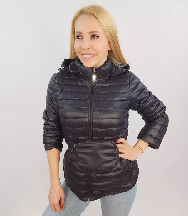 Krátká prošívaná přechodná bunda s kapucí