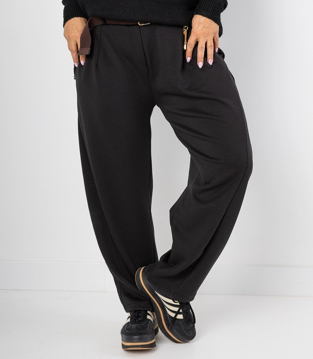 Dámské látkové kalhoty banánového střihu s páskem LILIANA