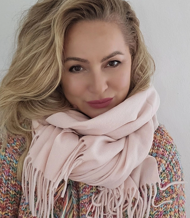 Stylový svetr AZALIA se zapínáním na knoflíky a ozdobným lemem