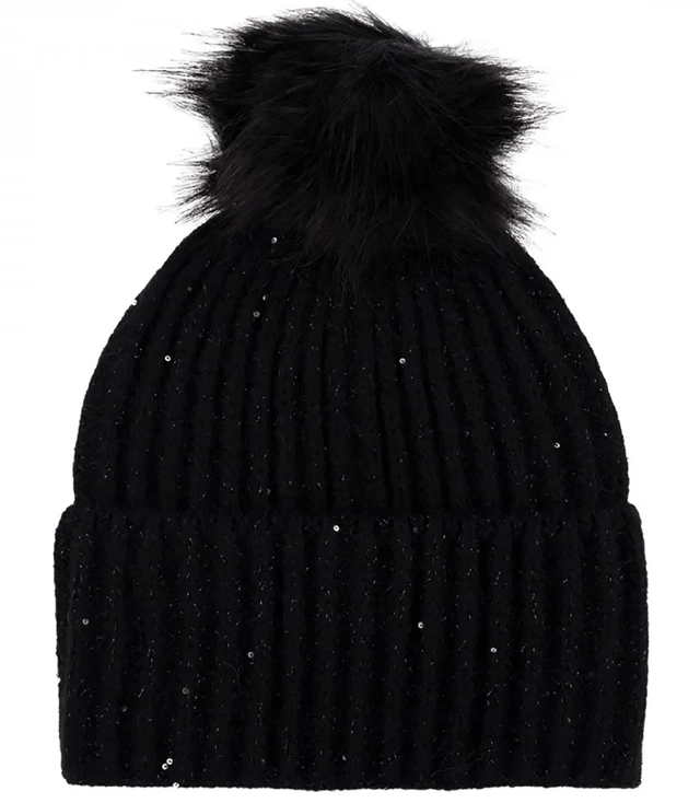 Teplá dámská čepice s bambulí a flitry podzimní zimní čepice