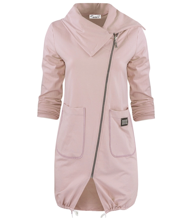 Tenká dlouhá mikina s šikmým zipem a nákrčníkem BEATA