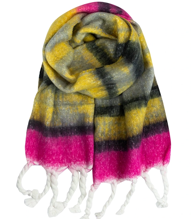 Teplá šála, pruhy, nadýchaný úplet