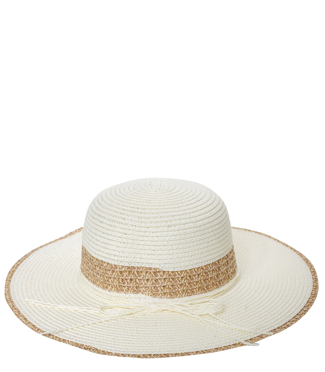 Dámský slaměný klobouk se zlatou nití a velkou krempou