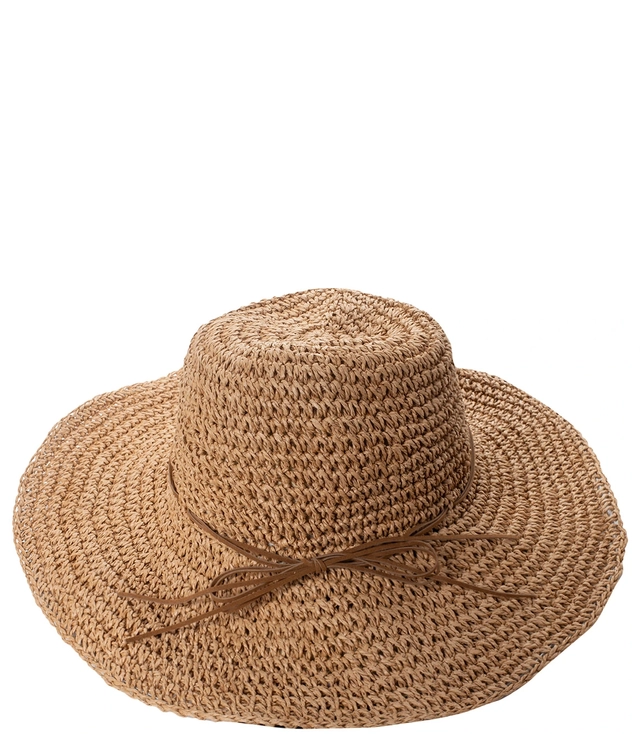 Módní velký pletený dámský klobouk s řemínkem