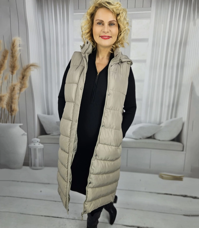 Dámská dlouhá prošívaná vesta bez rukávů s kapucí TORI