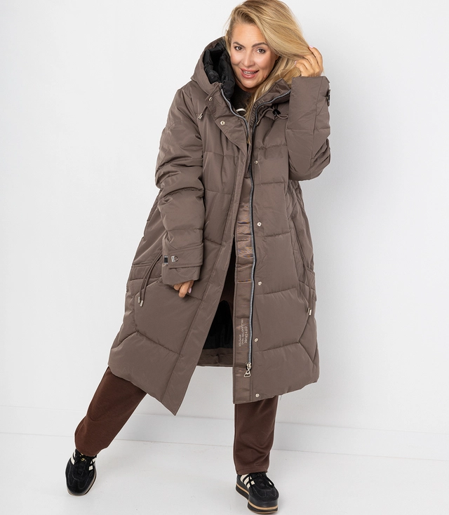 Dlouhý zimní prošívaný kabát SUZANA teplá bunda PLUS SIZE