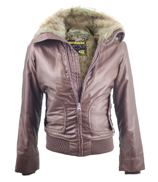 DÁMSKÁ TEPLÁ KRÁTKÁ BUNDA NA PILOTOVI Z UMĚLÉ KOŽEŠINY
