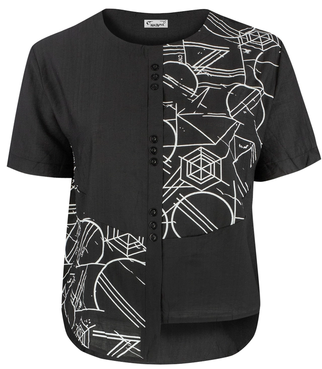 Košile s krátkým rukávem s asymetrickým předním dílem a potiskem