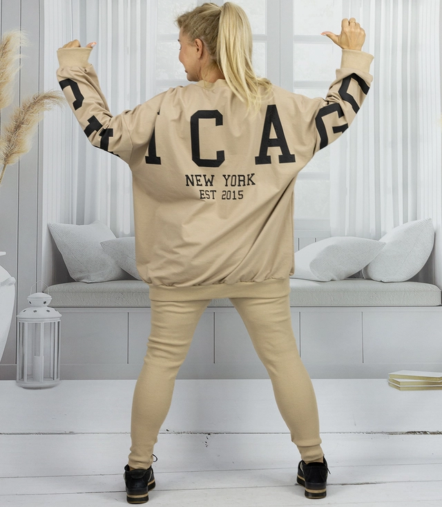 Dámská tepláková souprava volná mikina + žebrované legíny CHICAGO