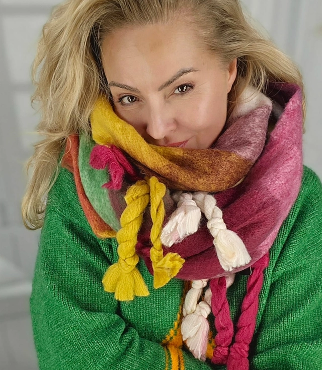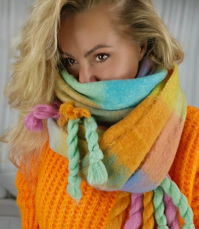 Hřejivá šála, kostkovaný vzor, nadýchaný úplet