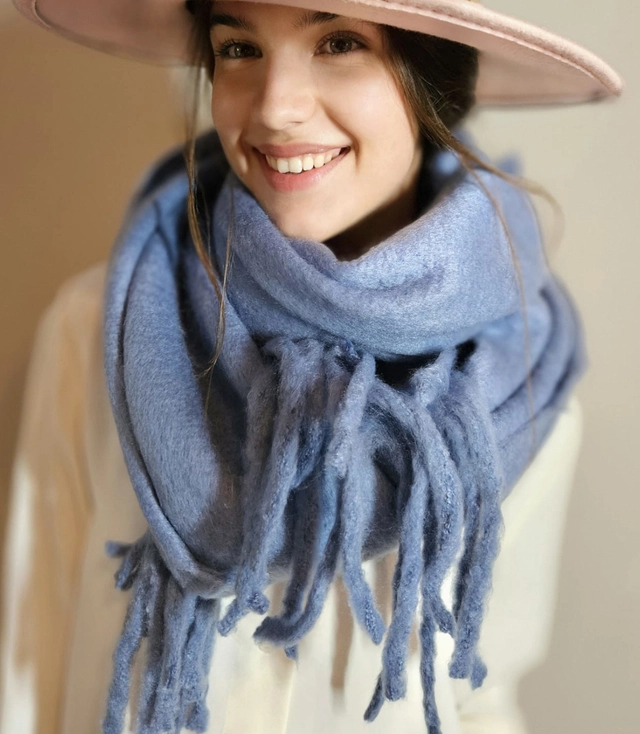 Šála Silná šála se střapci jednobarevná teplá měkká 180x45 cm