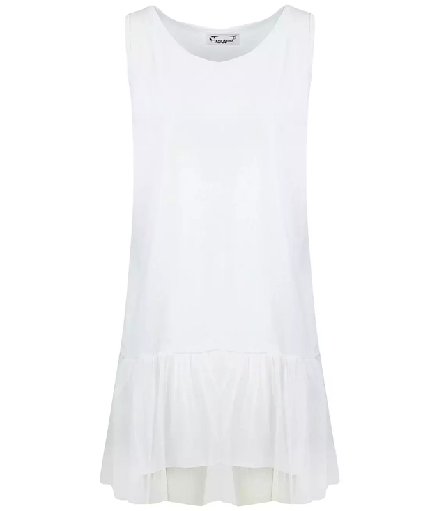 Jednoduché tunikové šaty s tylovými volány