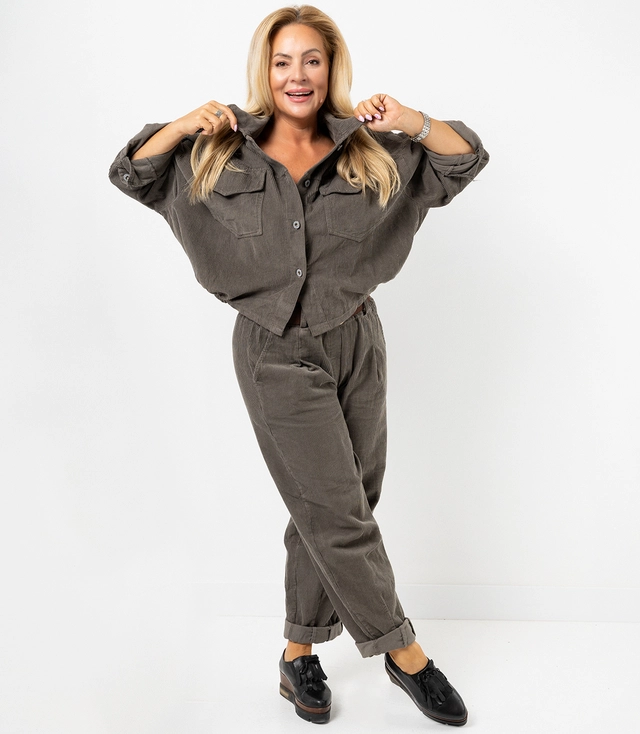 Manšestrová souprava kalhot s páskem a bundokošile CHICA