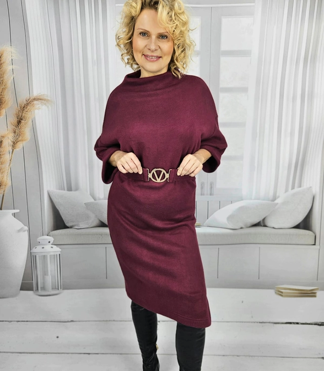 Pletené midi šaty s páskem a netopýřími rukávy ALENA