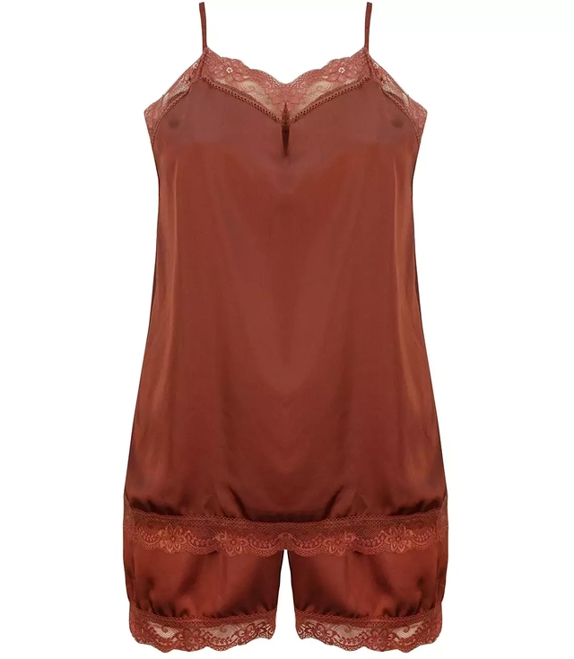 Saténový set top + šortky s krajkou
