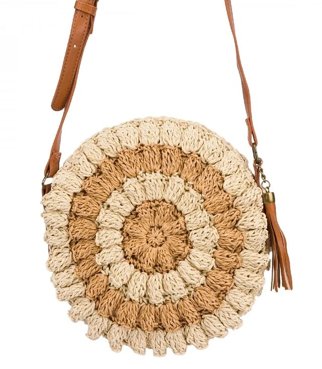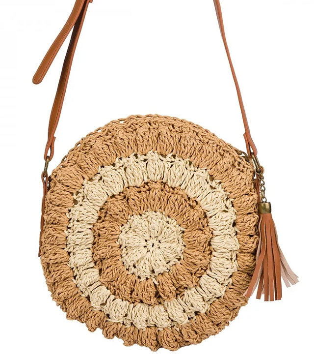 Kulatá malá letní taška přes rameno z papírové rafie