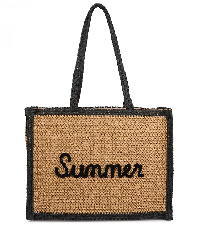 Velká prostorná pletená polstrovaná taška s nápisem SUMMER