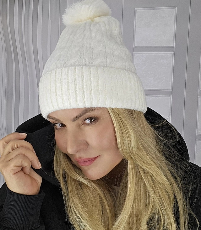 Teplá dámská zimní čepice s bambulí podzimní žebrovaná jednobarevná