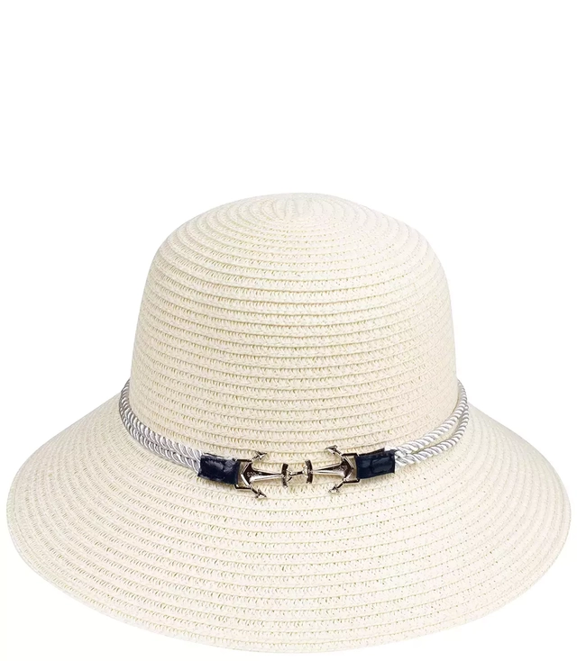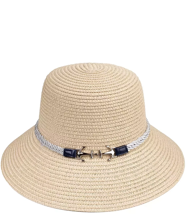 Slaměný klobouk z rafie s kotvami na šňůrce