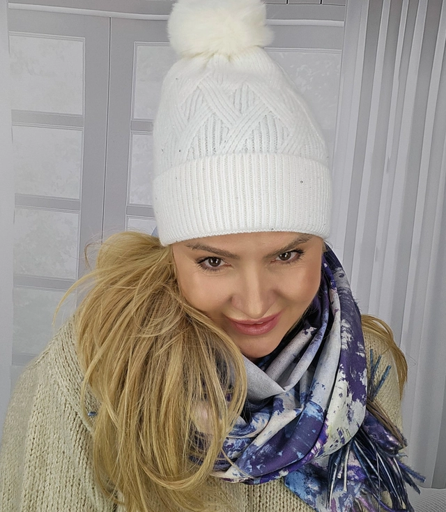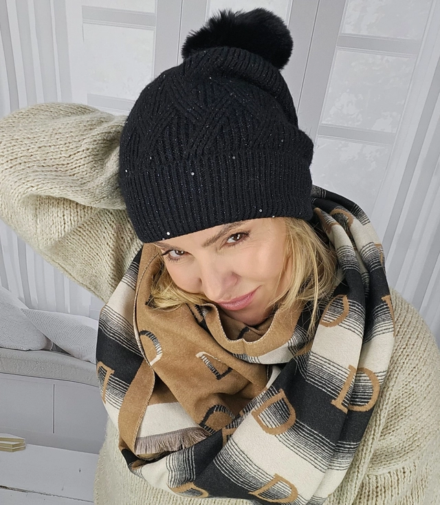 Teplá dámská čepice s bambulí zimní podzim se zirkony jednobarevná