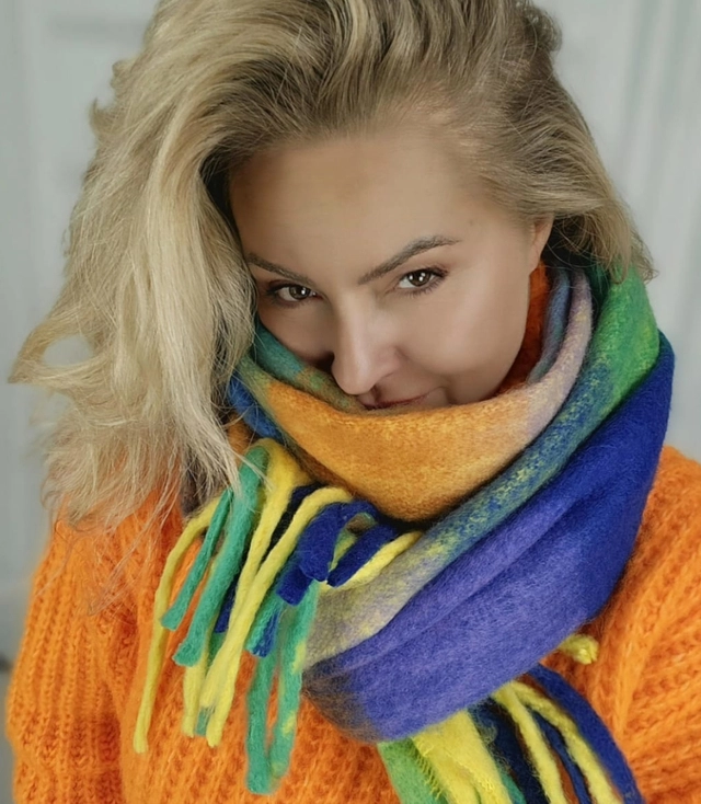Teplá srdcová šála ombre oboustranná pletenina