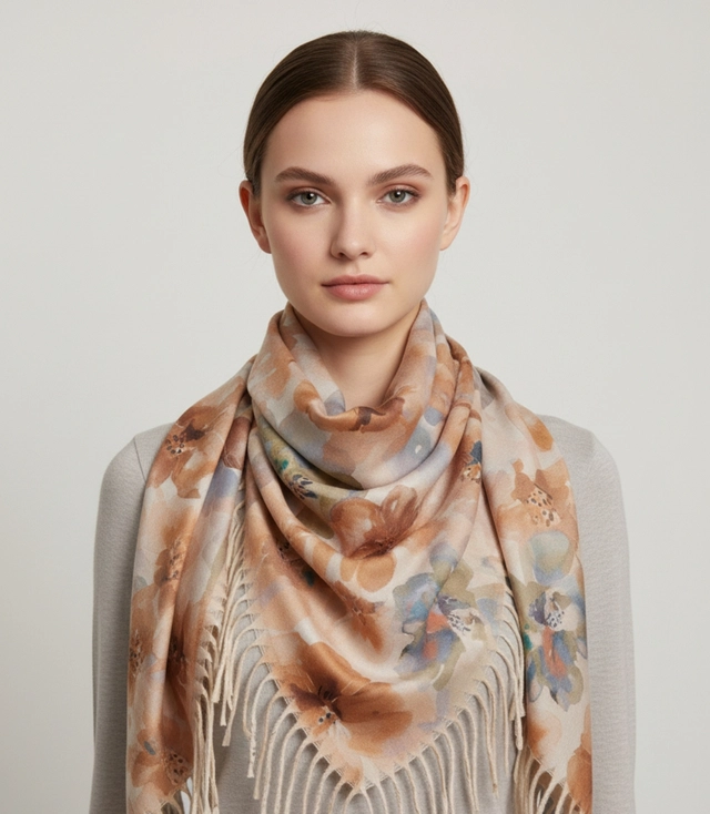 Dámský šátek s akvarelovým jemným vzorem a střapci