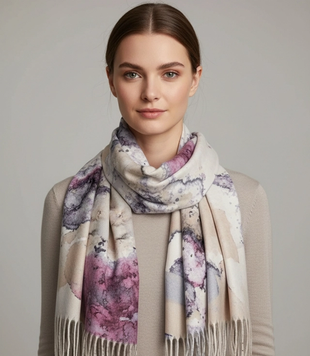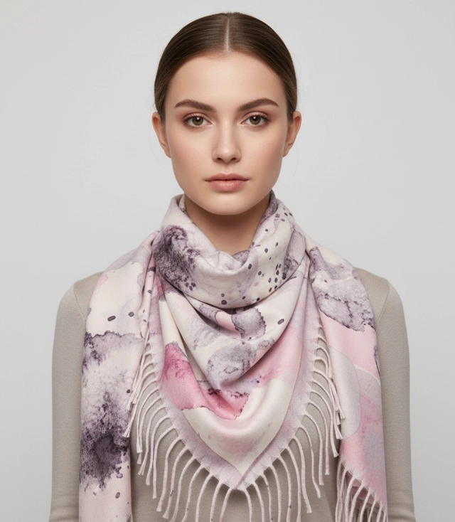 Dámská šála s akvarelovým jemným vzorem a střapci