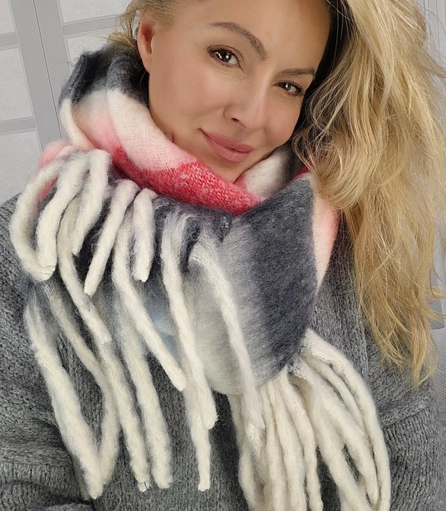 Hřejivá šála, kostkovaný vzor, nadýchaný úplet