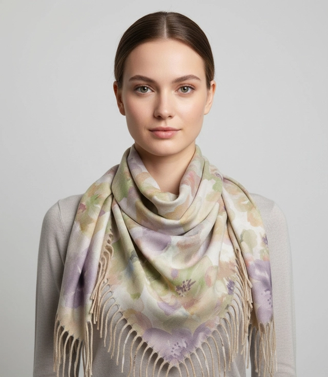 Dámský šátek s akvarelovým jemným vzorem a střapci