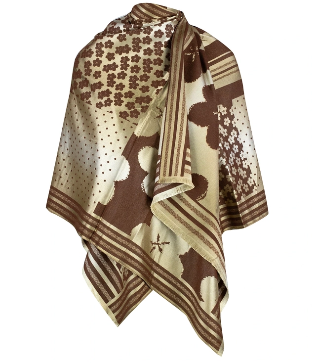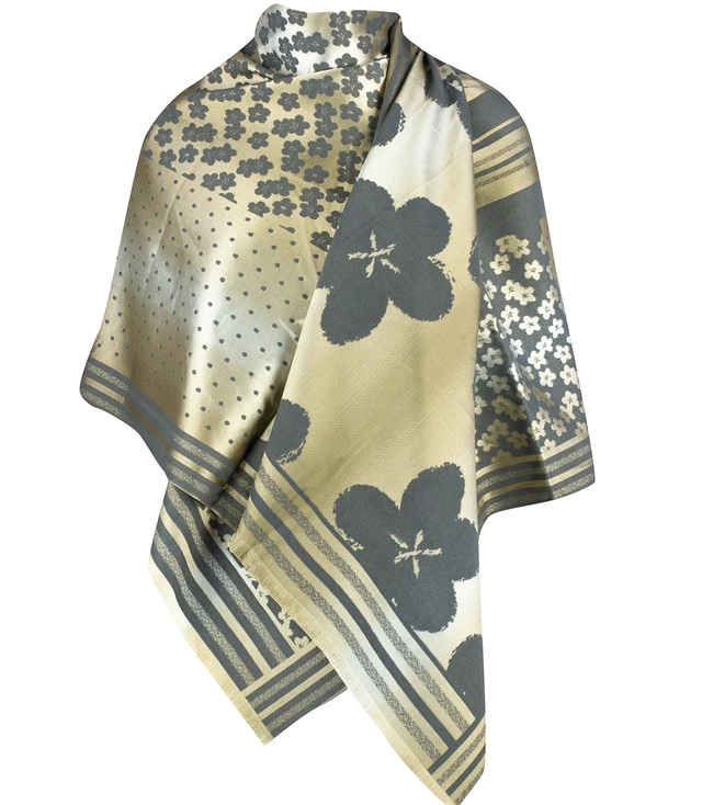 Elegantní oboustranná šála se zlatou nití a květinovým vzorem