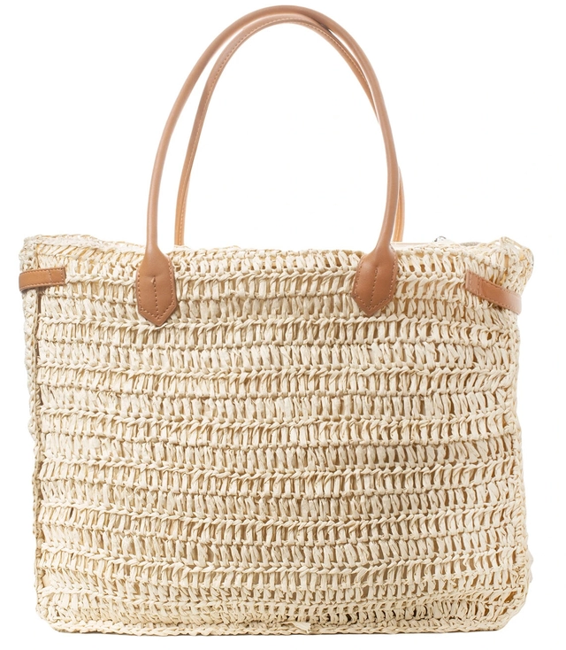 Velká obdélníková plážová taška ze slámy s uchy z ekokůže