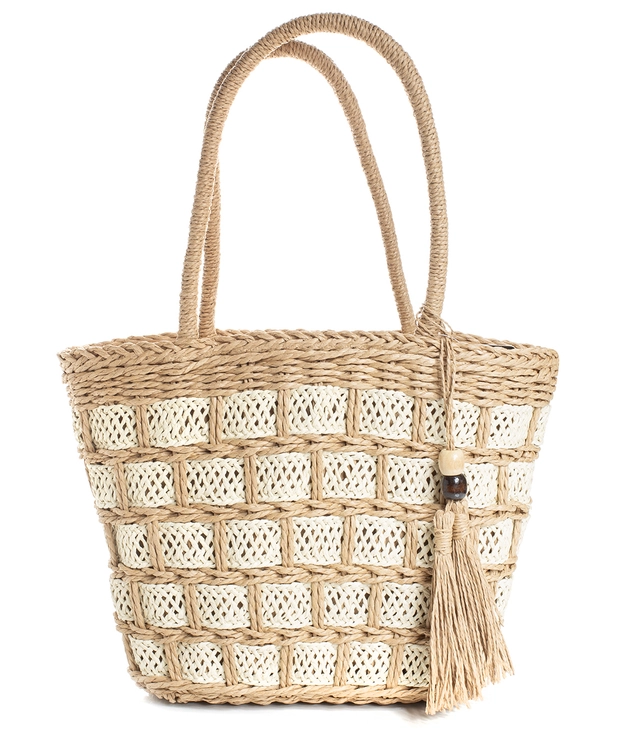 Velká obdélníková plážová taška ze slámy s prolamovaným vzorem