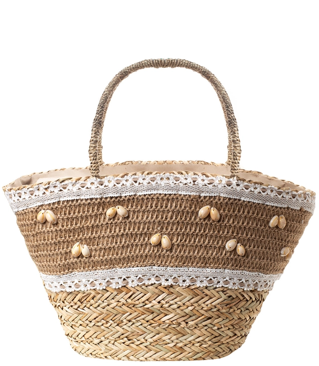 Mega velká letní taška pletený koš s podšívkou ze skořápky