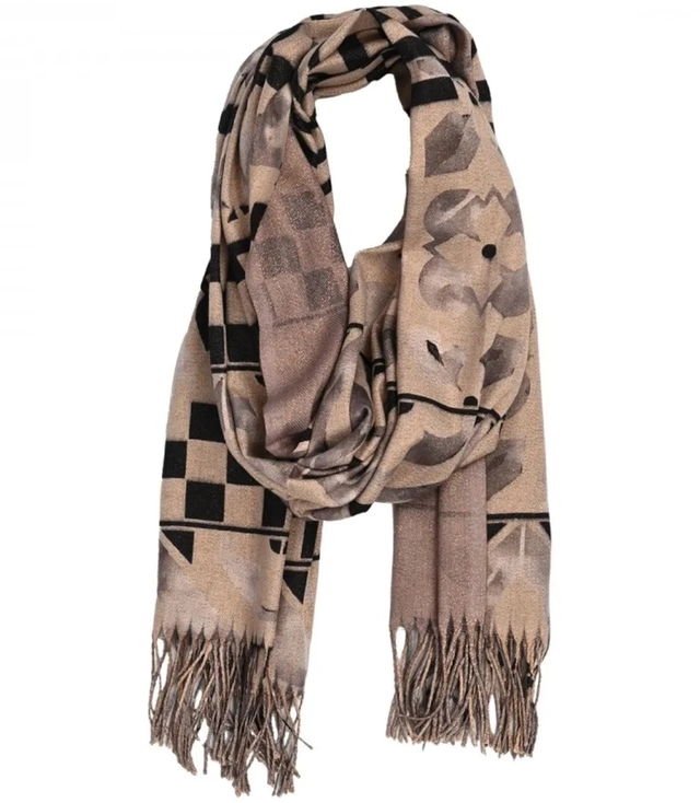 Teplá stylová šála s mozaikovým vzorem lesklá nit měkká hladká 180x70 cm