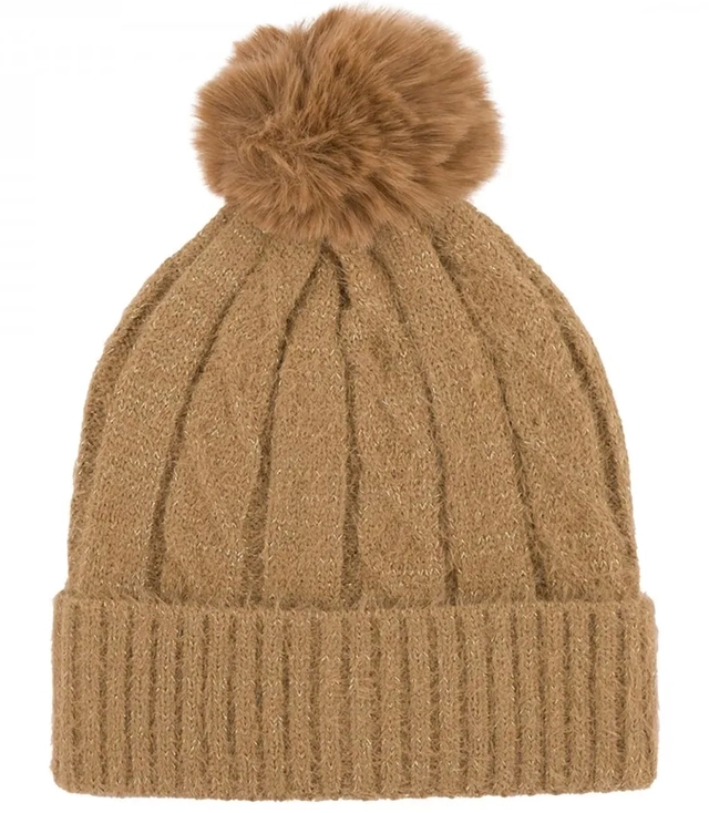Teplá dámská čepice s bambulí a lesklou nití podzimní zimní čepice