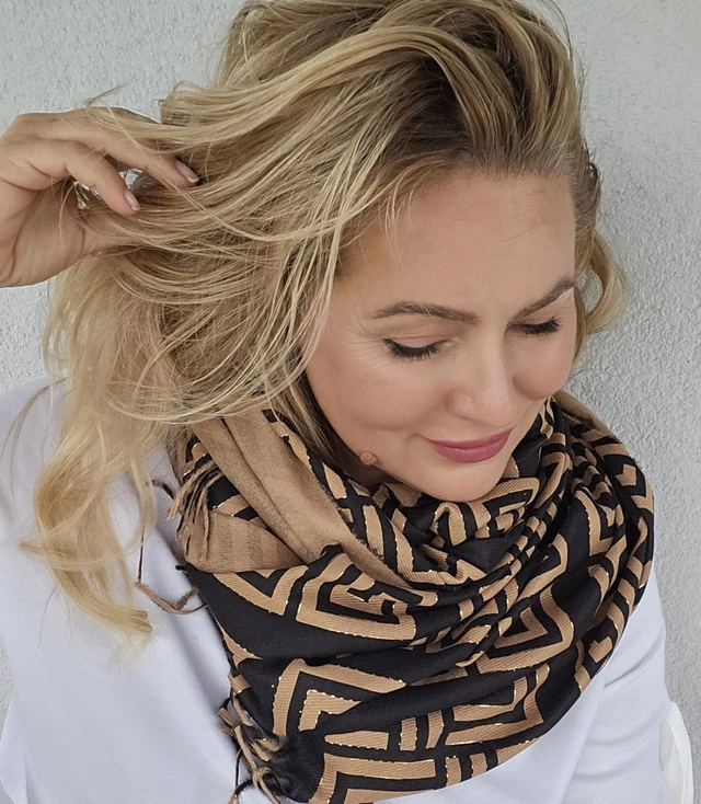 Stylový šátek se střapci abstraktní měkký hladký 180x75 cm