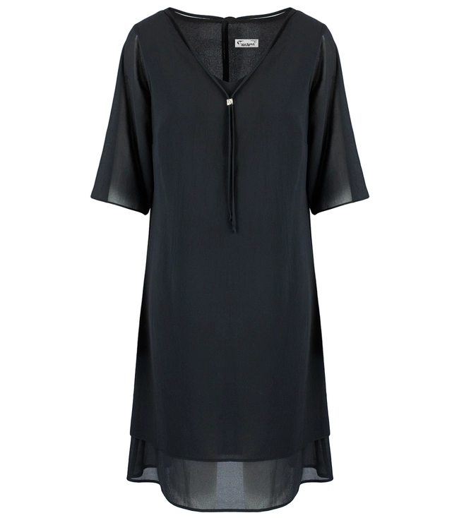 Jednoduché tunikové šaty s tylovými volány