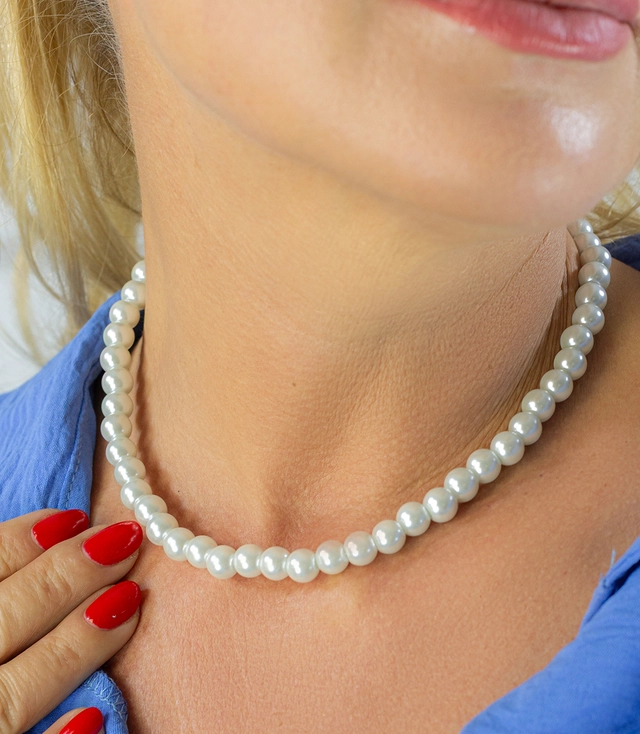 Krátký perlový náhrdelník s přívěskem elegantní šňůra perel
