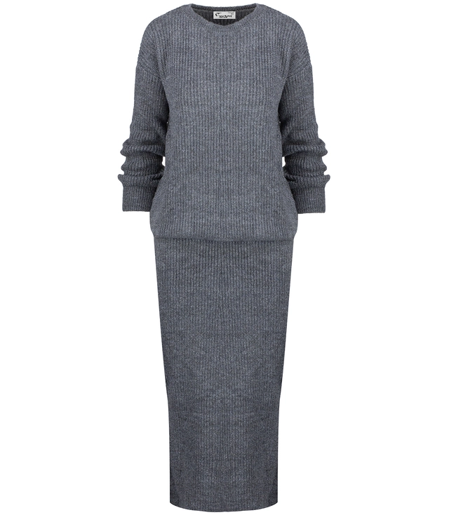 Úpletový set svetr + sukně v jednobarevném provedení BELLA