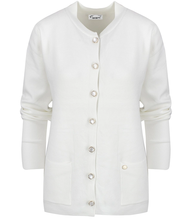 Stylový svetr AZALIA se zapínáním na knoflíky a ozdobným lemem