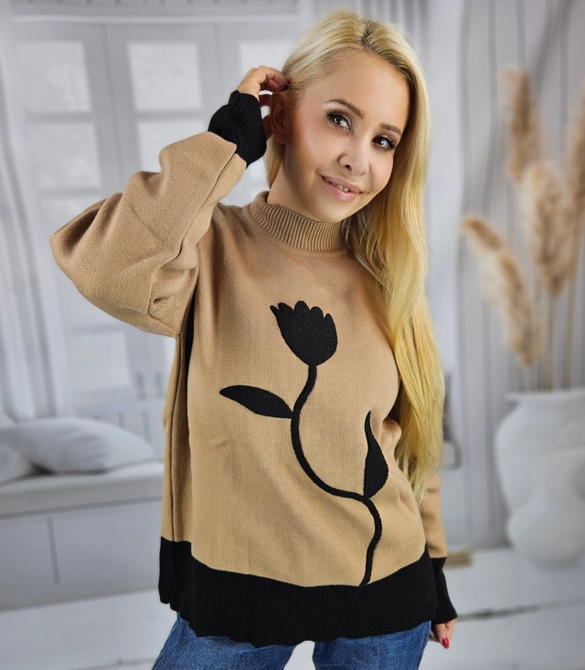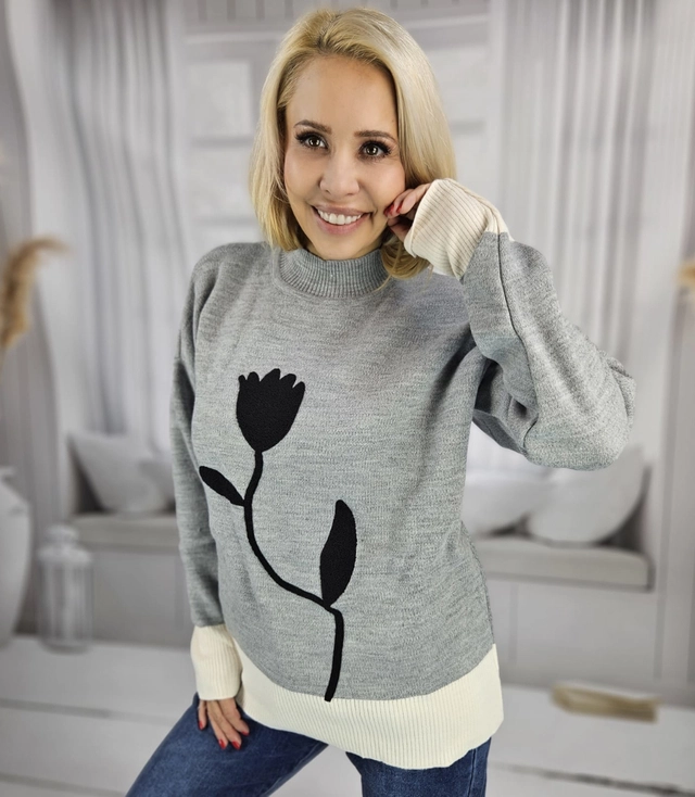 Dámský polopřiléhavý svetr s květinovým potiskem podzim zima ROSELYN