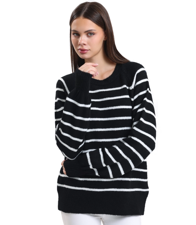 Teplý dámský módní pruhovaný svetr ANNA