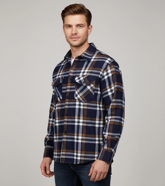 Teplá pánská kostkovaná košile s hřejivými knoflíky klasického střihu