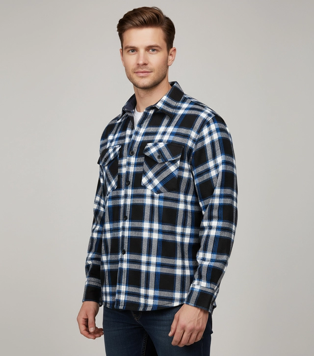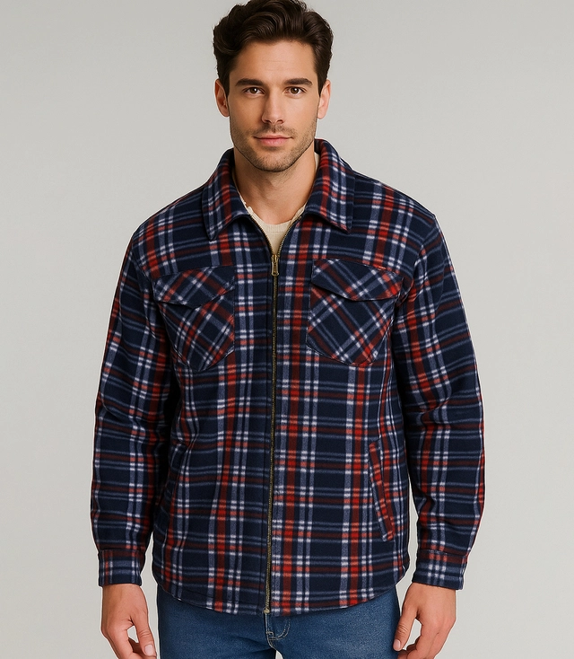 Teplá fleecová kostkovaná pánská košile zateplená kožešinou