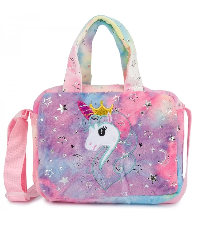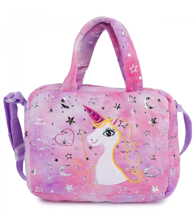 Dětská plyšová kabelka s rozkošným řemínkem na rukojeti s jednorožcem