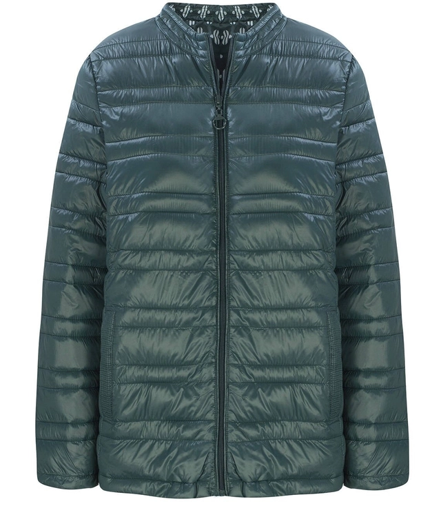 Tato oboustranná přechodná bunda je ideálním řešením pro chladnější dny. Má dvě strany: jedna je hladká a druhá má jemný vzor. Bunda je prošívaná pro větší eleganci a je také zateplená pro teplo v chladných dnech. Na přední straně jsou dvě kapsy a zapínání je na zip. Bunda má stojáček u krku a dlouhé rukávy.