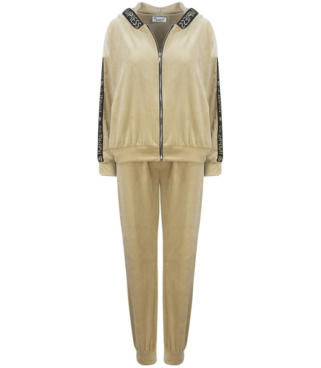 Dámská velurová tepláková souprava složená z mikiny a kalhot.