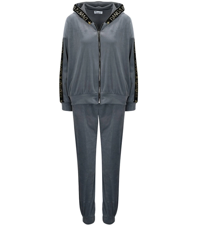 Dámská velurová tepláková souprava složená z mikiny a kalhot.